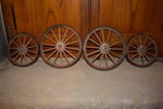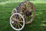 Aprés avoir tourné le moyeu au tour à bois, il faut le monter sur le diviseur pour pouvoir le mortaiser. En principe, les roues avant de voiture à 4 roues ont 12 rayons et les roues arrières ont 14 rayons. Le moyeu fini, il faut le cercler avec des cordons métalliques et une frette en fer pour éviter son éclatement lors de l'enrayage.