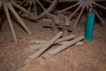 Pour cela, un feu de bois est allumé au sol à l'intérieur duquel est déposé le fer.