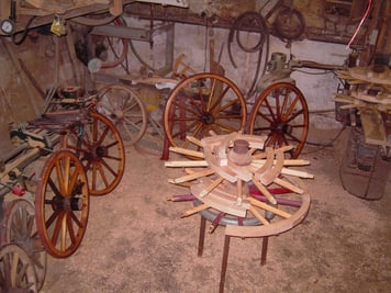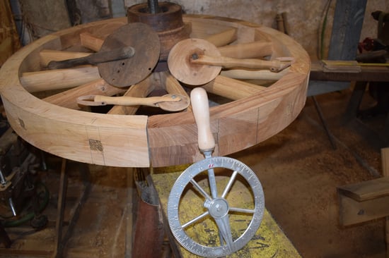 C'est un travail long et précis car chaque partie de la roue est unique (jante, raie, moyeu, fer...), le travail à l'aide de machines permet de préparer les bois, mais l'ajustement ne peut se faire que manuellement.