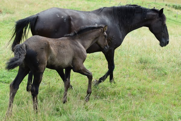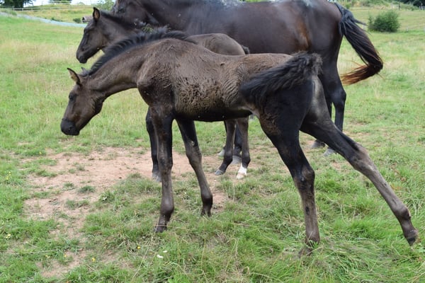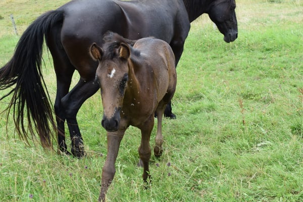 METIS est née le 13 mai 2020, c'est une superbe pouliche entièrement noire. Elle est issue du croisement, qui a déjà fait ses preuves, entre Régina et Sustu (les reproducteurs de notre élevage). Régina est issue d'une élevage de l'ile de Minorque spécialisée dans la discipline du dressage (Regina a fait l'objet d'une étude génétique morphologique disponible sur simple demande).