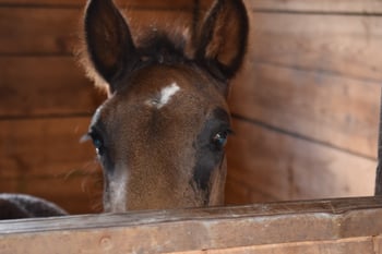Metis est curieuse, bien faite et sera une grande pouliche avec de la profondeur de poitrine.
