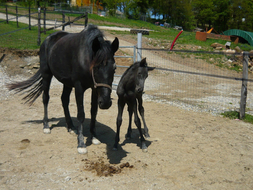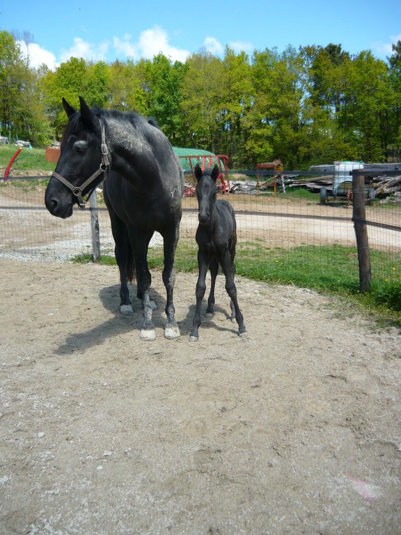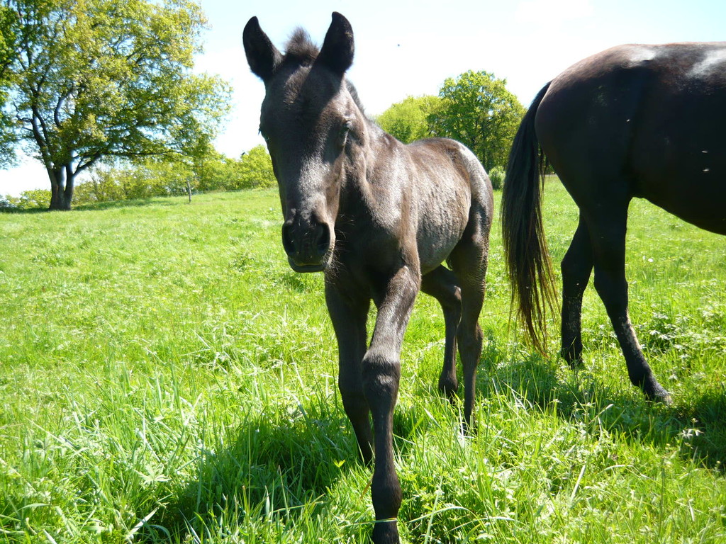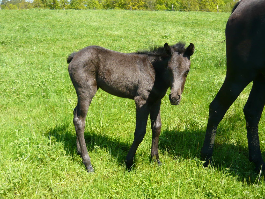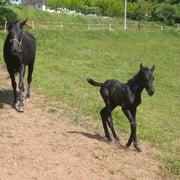 La première pouliche de l'année est née le 15 avril dernier, toute noire, fille de Régina, par Duman, et de Suker, par Jeppe, notre étalon.
