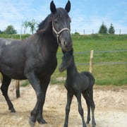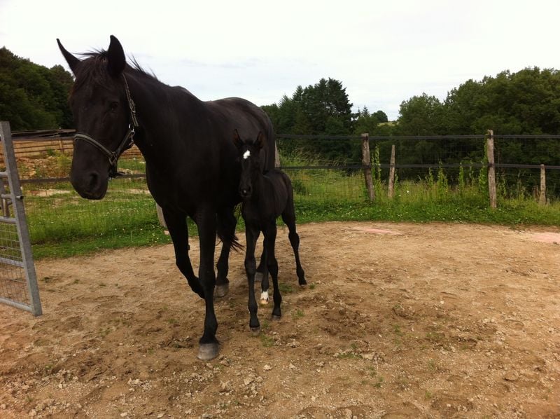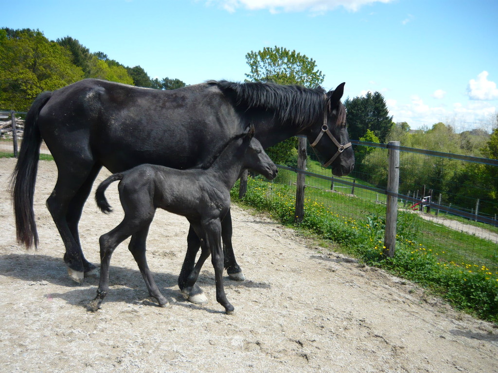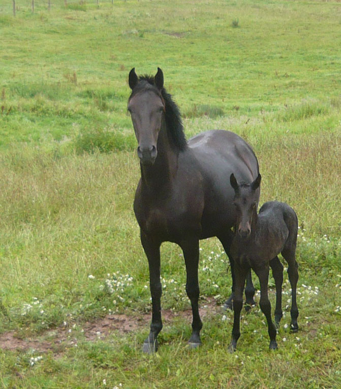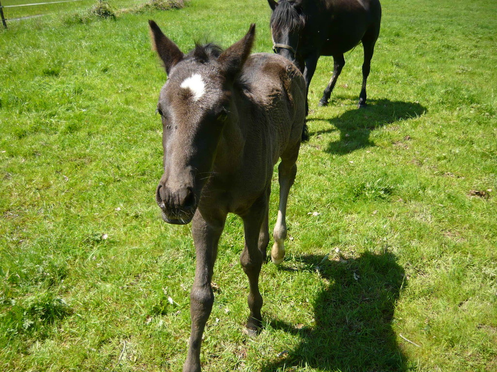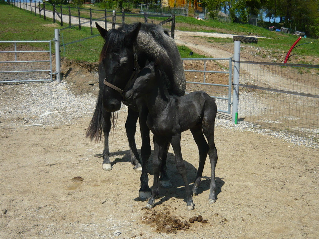 La première pouliche de l'année est née le 15 avril dernier, toute noire, fille de Régina, par Duman, et de Suker, par Jeppe, notre étalon.