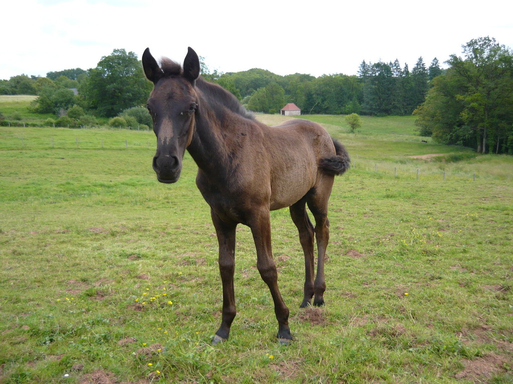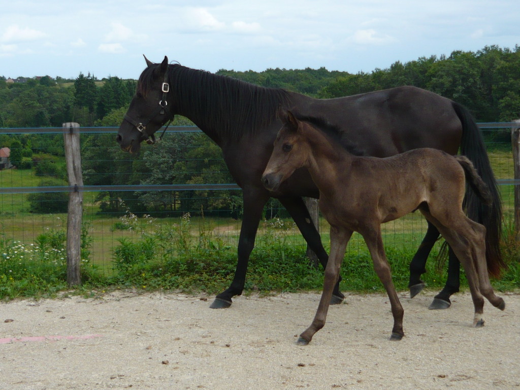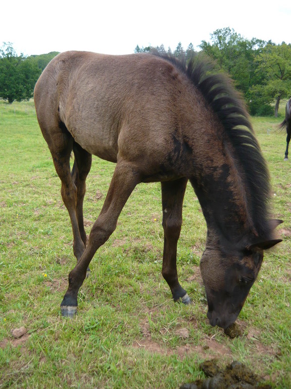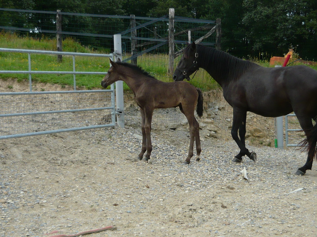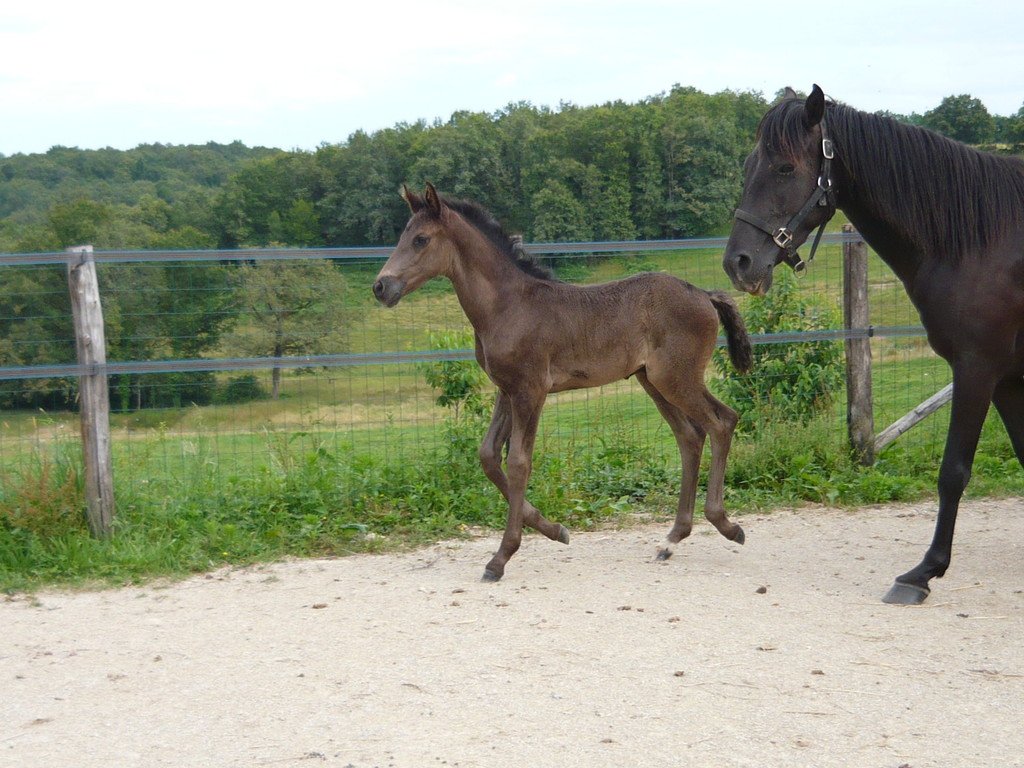 Poulain pleins papiers né le 3 mai 2010, le dernier né pour cette année... mais le premier fils de Suker, notre étalon et de Sinia, notre poulinière. Trés grand poulain (sa mère Sinia mesure 1,70 m) et entièrement noir.