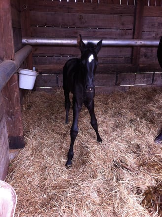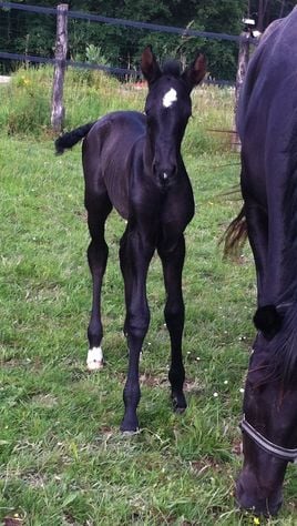 Naissance le 14 avril 2012 de CALIENTE LCP, fille de Regina, par Duman et de Suker, par Jeppe. Belle pouliche toute noire et très fine.