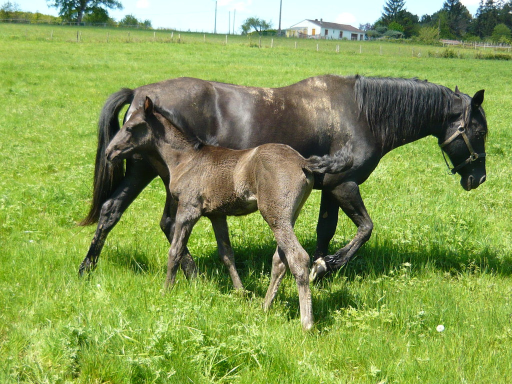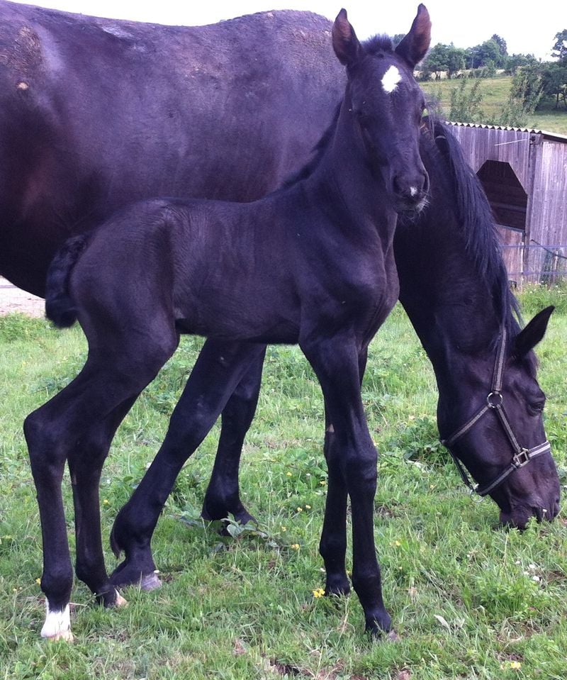 Nouvelle naissance le 1er mai de BORGIA LCP, fille de SINIA YSG, par Delfy, et de SUKER, par Jeppe, notre étalon. Belle pouliche toute noire, très fine, sera grande.